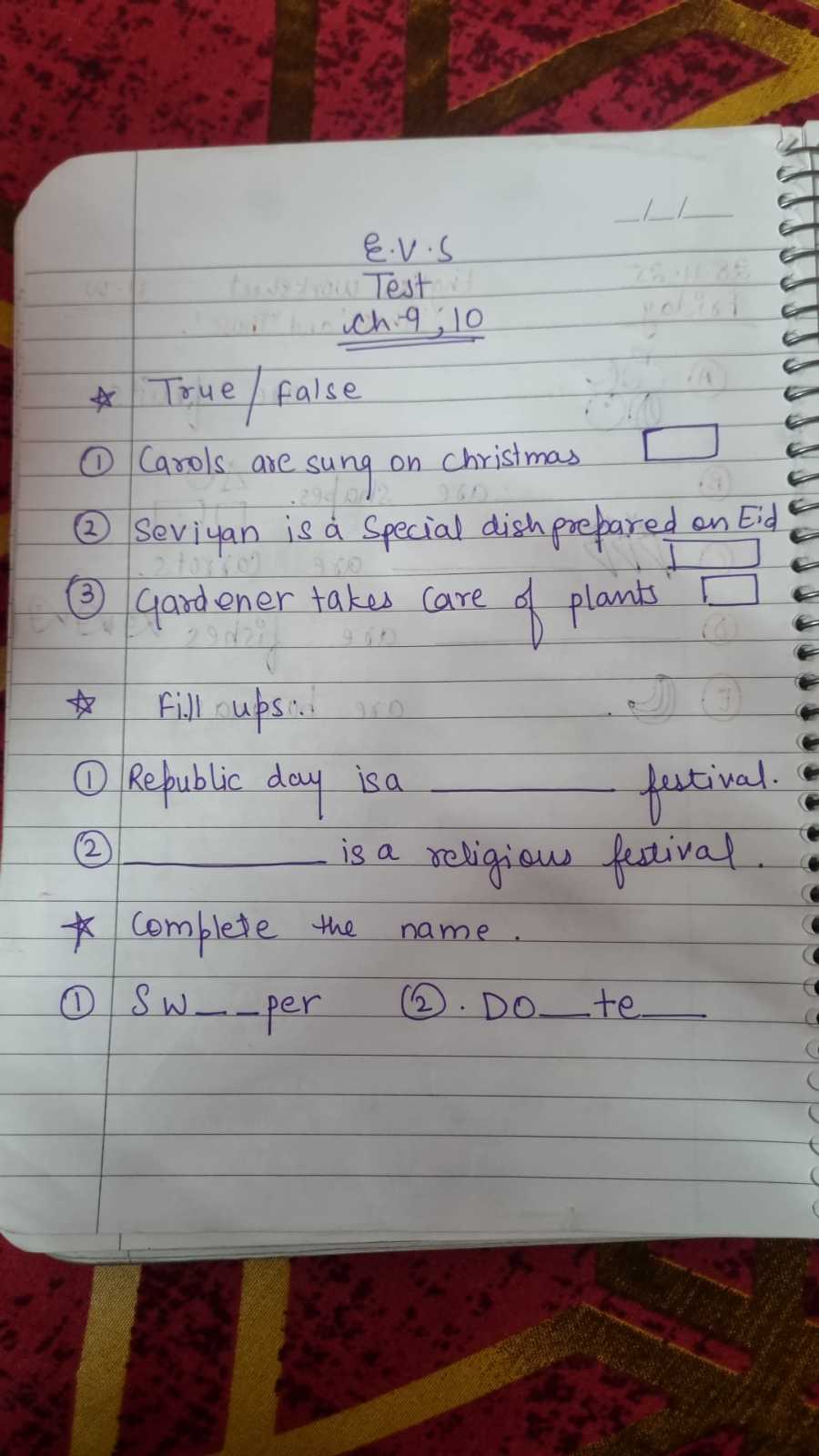 Learn vatika ch-10 and vyom ch- sarvanam for tomorrow's class test.