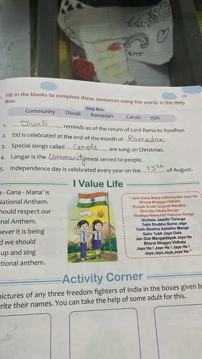 Paste any 5 pictures of our National Symbols in EVS notebook by tomorrow.