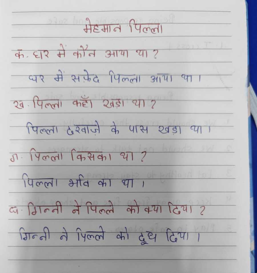 पाठ विराम चिन्ह के प्रश्न उत्तर पूरे करके कॉपी चेक करने के लिए लाएं