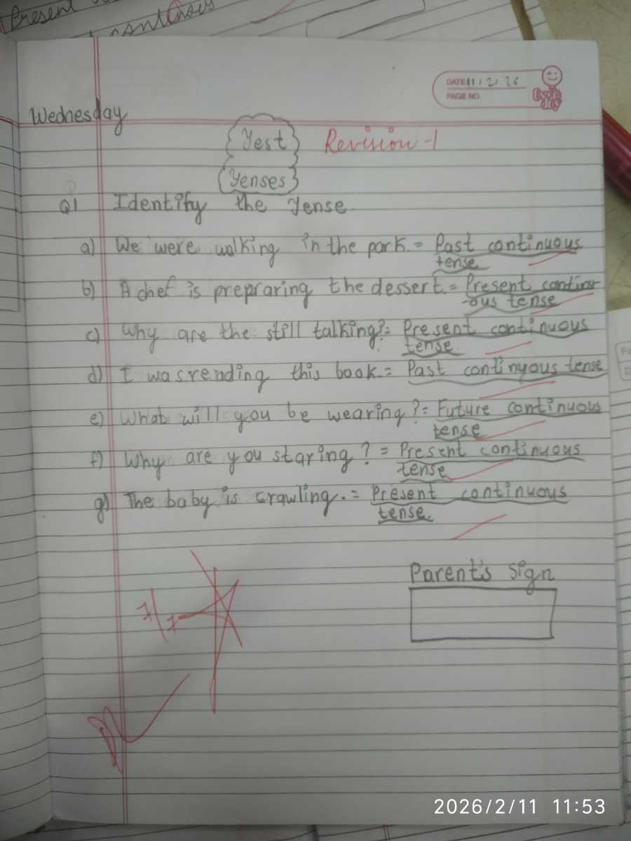 Class work attached, revise 'tenses' for test.